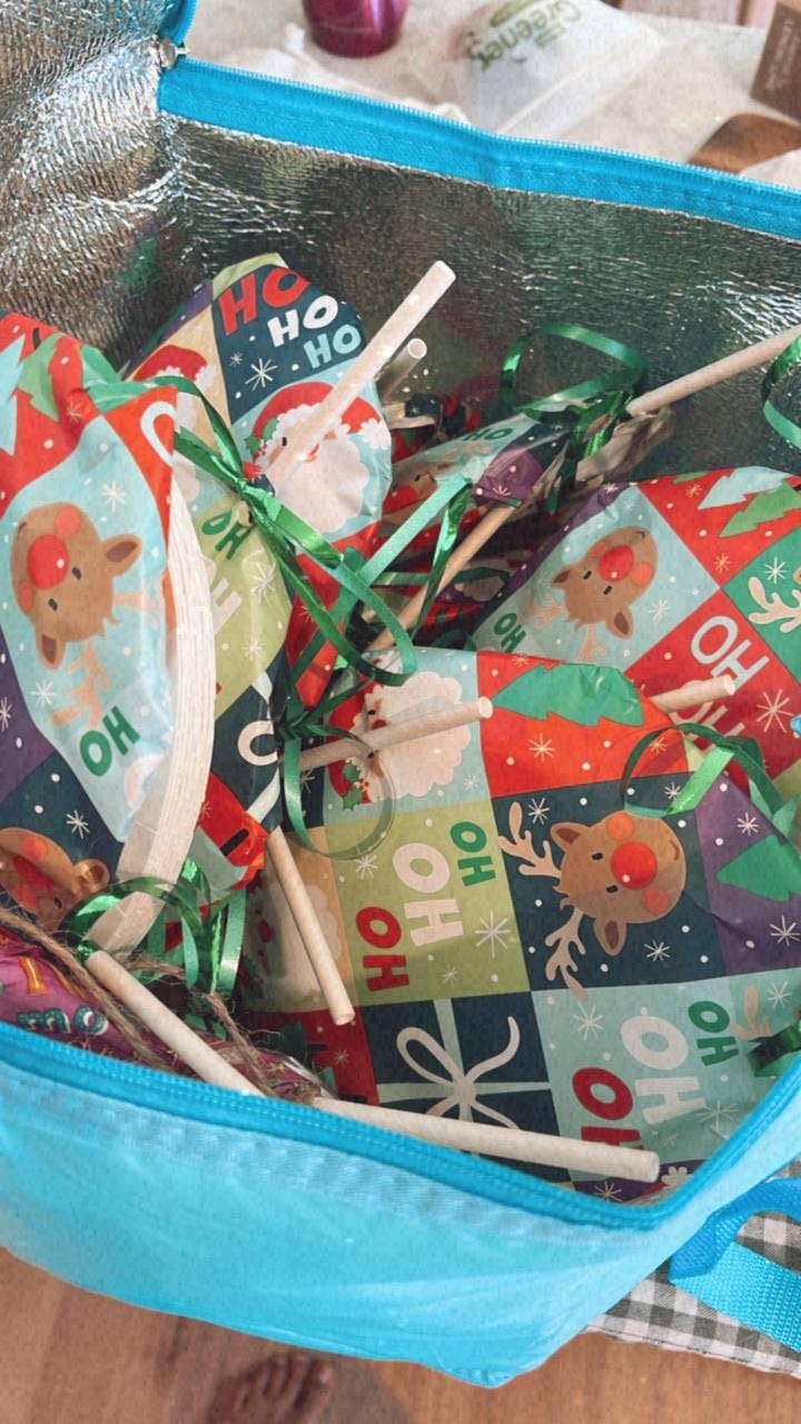 My mum made the 'lolly bags', which were giant lollipops. She got paper plates, put carob bears inside and some other little fun things and wrapped it like a lollypop with a reusable straw as the handle. She's a resourceful one I tell ya.