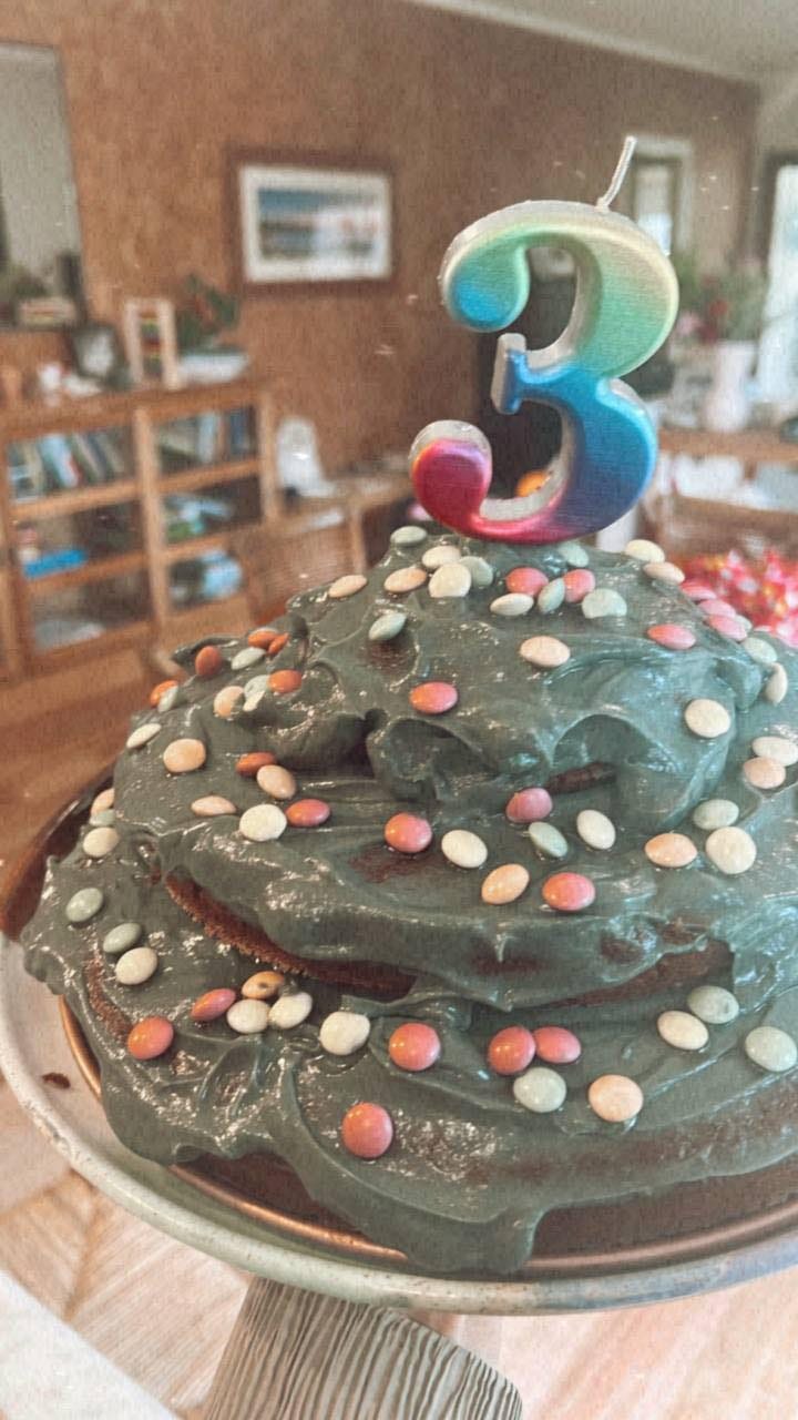 Pax wanted a blue cake-- so I made my regular suuuuper nutrient dense chocolate cake with blue icing. The blue icing was coconut cream, ripe avocadoes, maple syrup and butterfly pea powder. The kids were apprehensive when I told them there were avos in it, but overall, the earthy flavour went down well (Except for my nephew who scraped the icing off and spat it out into the tea towel when I gave him a taste).
